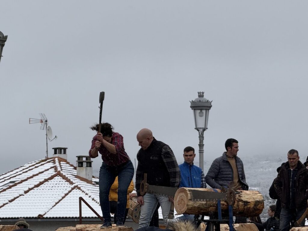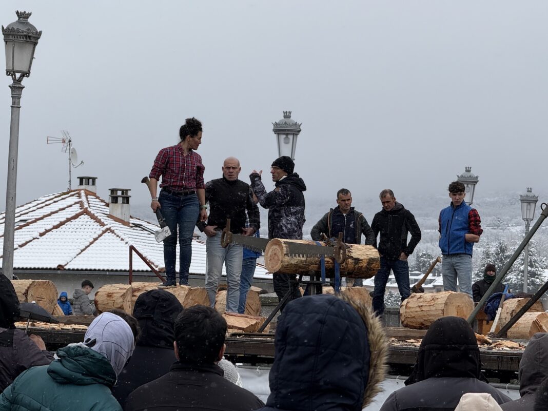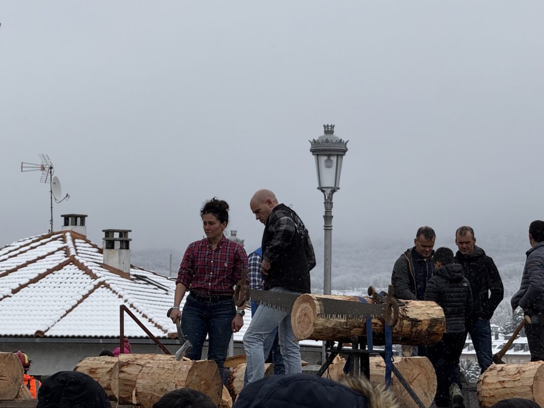 Es una auténtica gabarrera de El Espinar. A Claudia no le tiembla el pulso para subirse al escenario de la Fiesta de los Gabarreros y cortar troncos como sus compañeros.