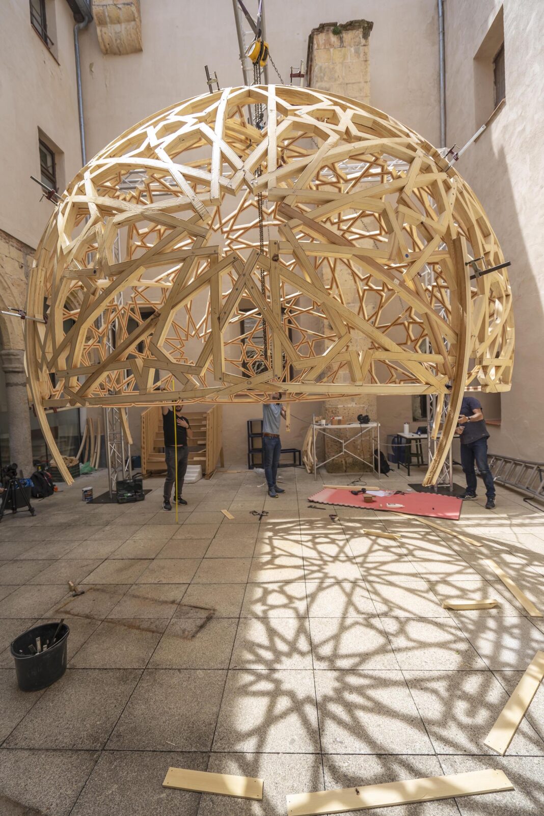 La construcción de la esfera es fruto de un proyecto internacional liderado por IE University y en el que participan Princeton University, TUDelft, ETSAM, Penn State University y la escuela de carpintería de Narros del Castillo (Ávila).