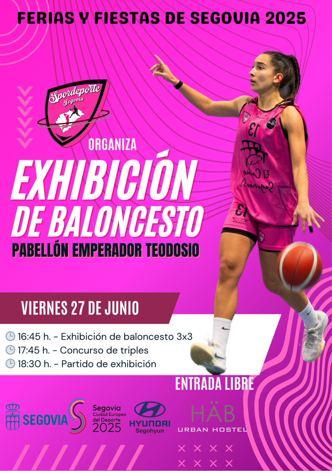 Este viernes, 27 de junio, el Pabellón Emperador Teodosio de Segovia acogerá una exhibición de baloncesto de alto nivel organizada por el Club Deportivo Spordeporte. Este evento, con entrada libre, forma parte del programa de las Ferias y Fiestas de Segovia 2025.