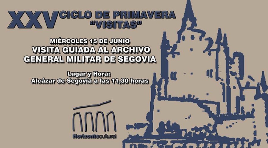 La asociación Horizonte Cultural ha organizado, dentro de su XXV Ciclo de Primavera, una nueva actividad para todos los ciudadanos interesados. La nueva actividad programada es una visita guiada al Archivo General Militar de Segovia., que tendrá lugar el próximo miércoles, 15 de junio. El lugar desde donde saldrá la excursión será el Álcazar de Segovia, a las 11:30 horas.
