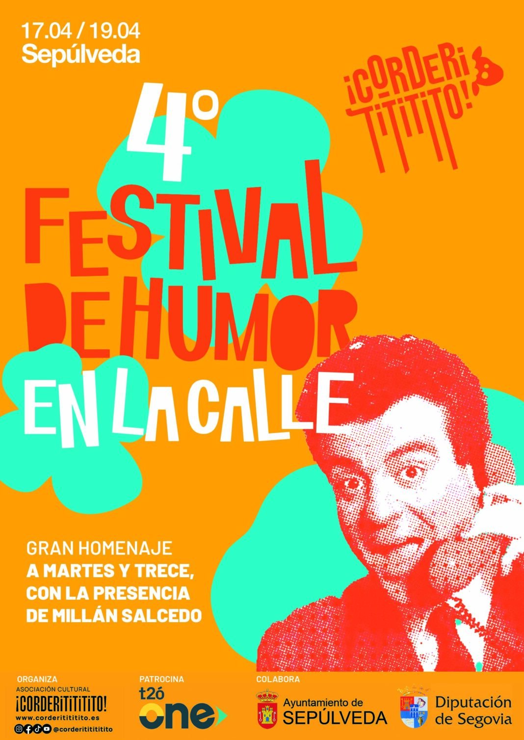 El Festival de Humor en la Calle Corderitititito celebrará su cuarta edición los días 17, 18 y 19 de abril de 2026 en Sepúlveda. Esta es una de las citas culturales más originales y queridas del panorama humorístico en Castilla y León.